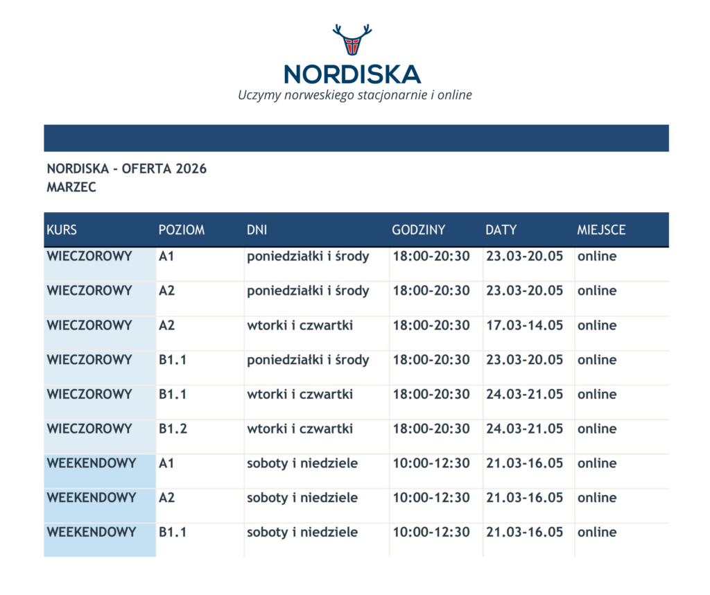 dwumiesięczny kurs norweskiego online lub stacjonarnie